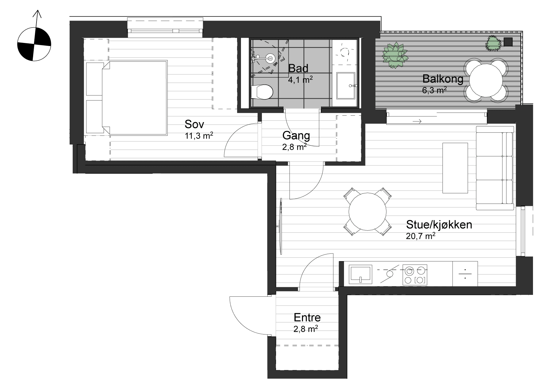 Dette er eksempelleilighet (C-403) og ikke representativt for denne spesifikke boligen