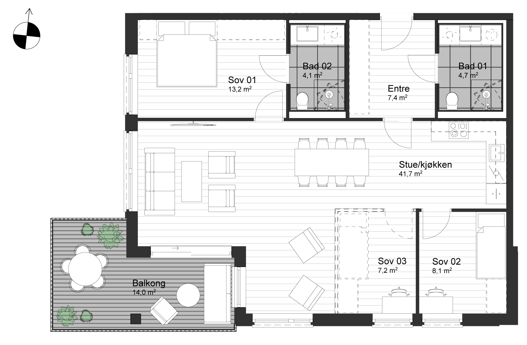 Dette er eksempelleilighet og ikke representativt for denne spesifikke boligen.