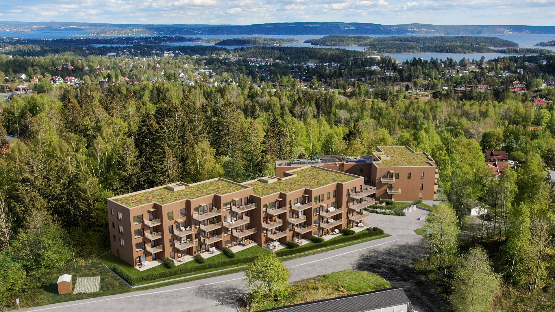 Vallergrenda ligger plassert på en høyde med fantastisk utsikt over Sandvika og fjorden fra felles takterrasse.
