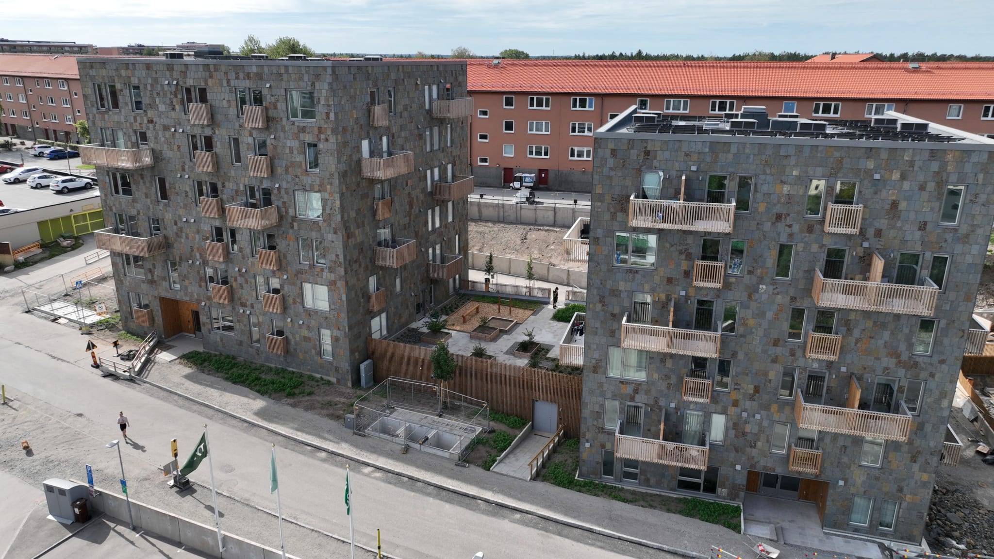 Projektet omfattar fyra punkthus med 188 hyresrätter i storlekar från 1 till 3 rum och kök. Bostäderna har ljusa ytskikt, ekparkettgolv och moderna kök från Marbodal. De flesta lägenheter har balkong eller spansk balkong.