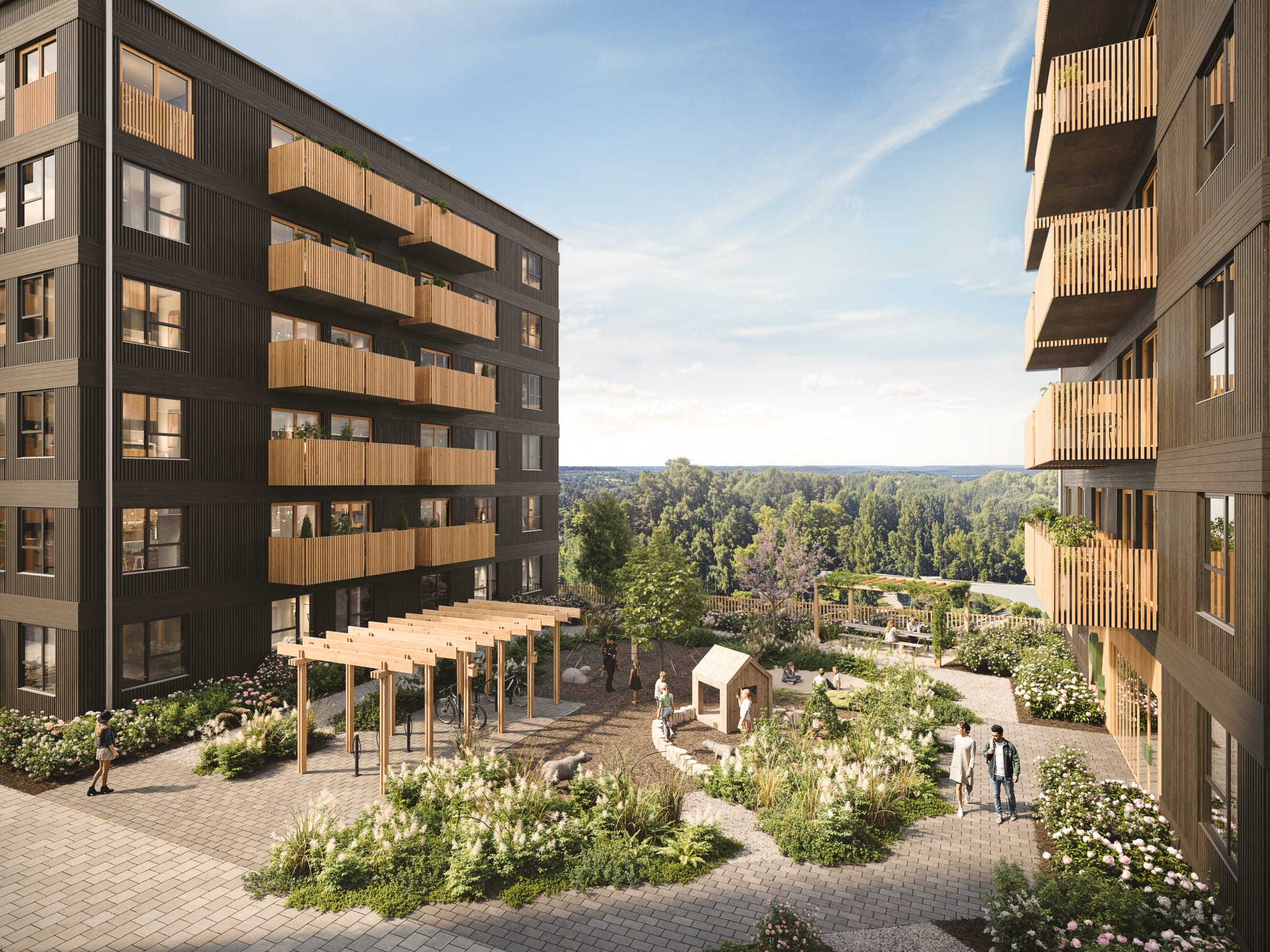 Det nya kvarteret är beläget på en höjd med naturen åt ena hållet och östra Orminge åt det andra. På promenad- eller cykelavstånd finns badsjöar, naturreservat och innerskärgården. Runt knuten finns bollplaner, parker, lekplatser, utegym och kommunikationer som snabbt tar dig till stan. Ett par minuter bort finns Orminge centrum med bibliotek, restauranger, bagerier, välsorterade mataffärer, gym och all annan tänkbar service.