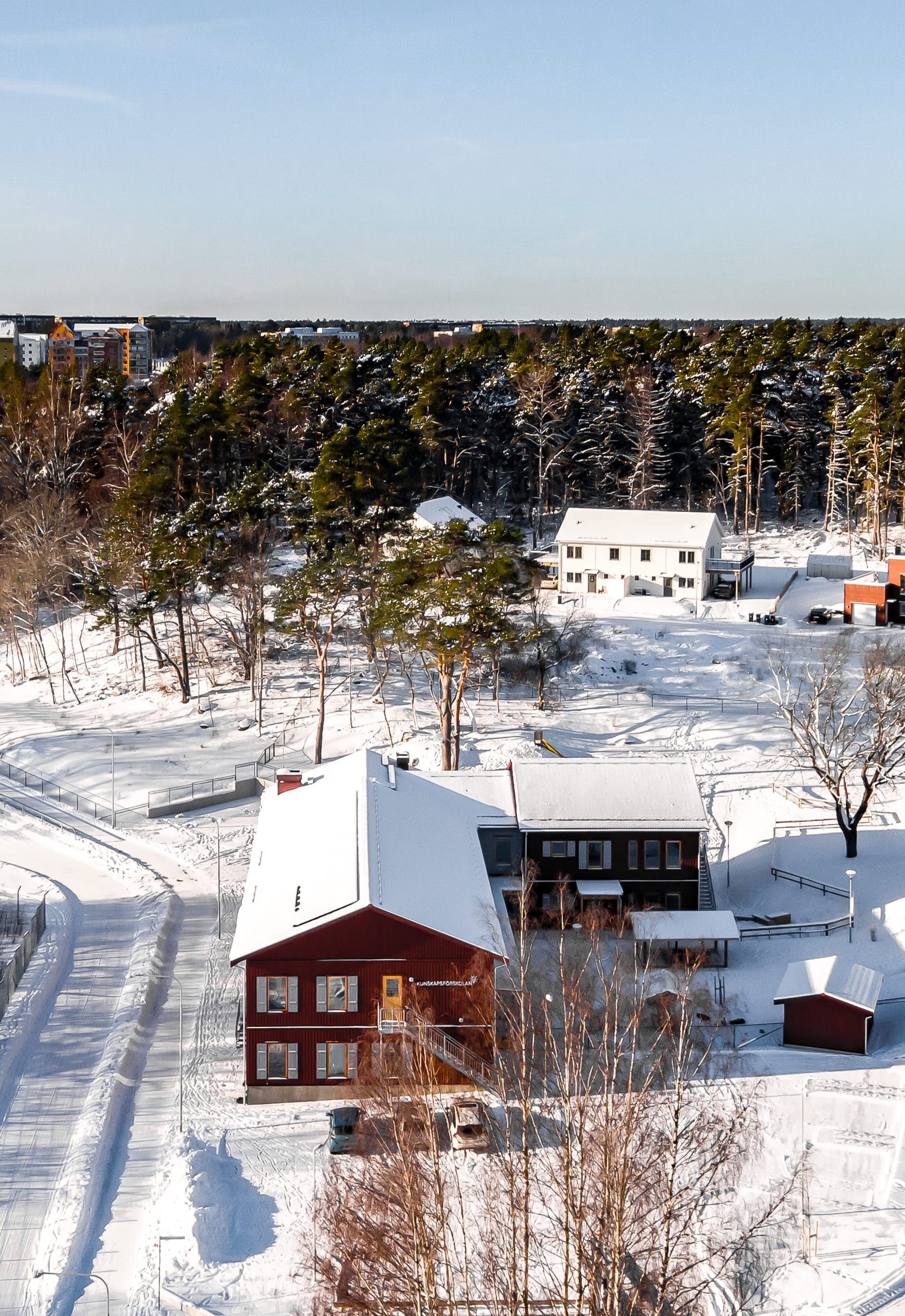 I enhetlighet med Norlandia Skölsta, uttrycker byggnaderna sig i sin faluröda färg samt skapar lekfull kontrast mot den grönskande naturen omkring.